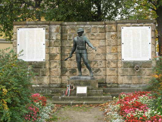 Z nieco innej beczki, naprzeciw kolegium stoi pomnik ofiar pierwszej wojny a na nim żołnierz hitlerowski.
