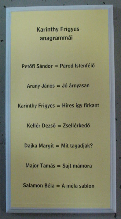 Znający węgierski pośmieją się w muzeum nad szeregiem zabaw językowych tam przytoczonych. I tak Frigyes Karinthy jest autorem szeregu zabawnych neologizmów jak na przykład