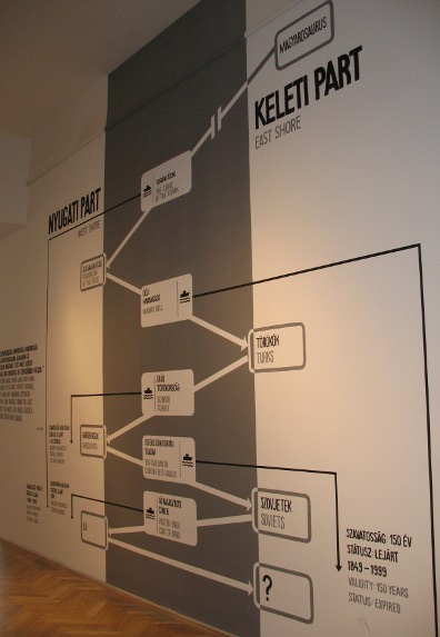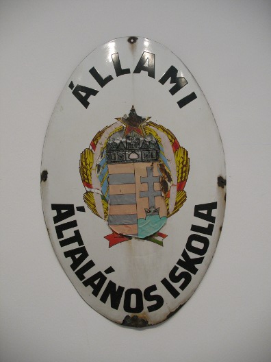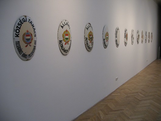 Zaczyna się duża część wystawy poświęcona godłu Węgier. Szolnokiego fascynuje moment zmiany herbu. W jednej z sal zebrane są tablice wieszane się na budynkach mieszczących instytucje państwowe, na których stary herb został zaklejony lub zamalowany nowym herbem. Przeróbki są zwykle parszywej jakości, byle jakie, stare godło wyłazi spod nowego dając wrażenie tandety. W małej salce leci film, w którym Szolnoki rozmawia z różnymi ludźmi na temat tych nieudolnych transformacji herbowych. Jest nostalgia za starym godłem, oburzenie na niedbałość wykonanych zmian, melancholijne uznanie odpowiedniości staro-nowych herbów wobec niezakończonej, rozmamłanej transformacji ustrojowej. Z jednej tablicy w filmie zeskrobywane jest godło z epoki Kádára, spod niego wyłania się świetnie zachowany herb Rákosiego.