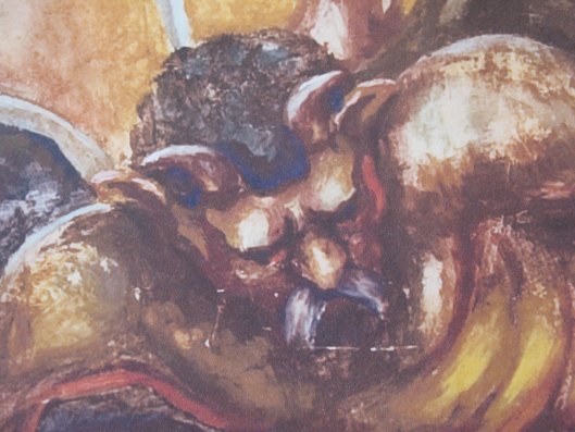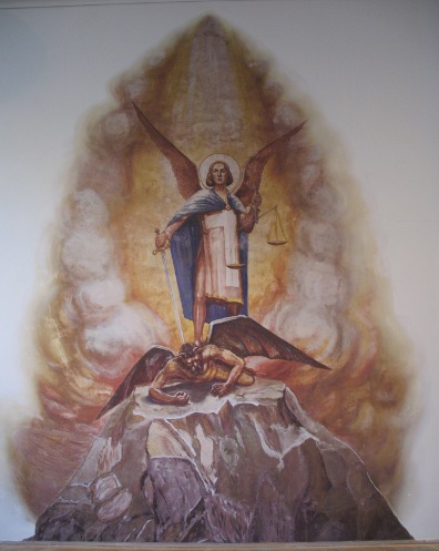 Potem kopia malowidła kościelnego przedstawiającego anioła zabijającego diabła. Diabeł, namalowany w latach socjalizmu, ma podobno twarz Stalina. Z głośnika radiowa transmisja południowego bicia w dzwony z kościoła, z którego pochodzi malowidło. Obok historia malarza, którzy, o ile pamiętam, dwa razy w życiu był obywatelem czechosłowackim i trzy węgierskim.