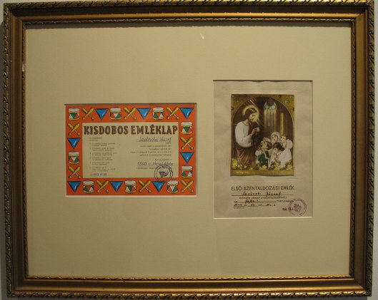 W ramie na ścianie wiszą pamiątka pierwszej komunii Szolnokiego oraz dyplom z przysięgi pionierskiej. Oba wydarzenia miały miejsce w tym samym tygodniu, Szolnoki dopiero lata później uznał ten zbieg okoliczności za znaczący.