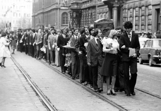 Istotą ballagásu jest mieszanka pożegnania ze szkołą z marszem triumfalnym celebrującym udane zakończenie tego ważnego etapu edukacji. Na mnie robi to zawsze wrażenie bo nie pamiętam, żeby w Polsce ktoś się aż tak przejmował takimi wydarzeniami. Potrafią Węgrzy docenić osiągnięcia edukacyjne, szacunek. Jednocześnie jednak pewnym niesmakiem napełnia mnie infantylizm tarisznyi, która wygląda jak zabawka na przerośniętych dzieciach, pompa procesji i cała sztucznawa ideologia ballagásu nawiązująca do wyprawiania czeladników w świat.