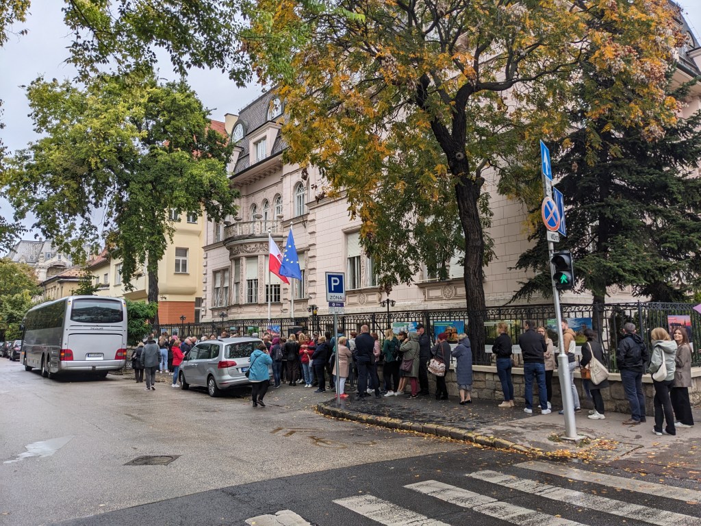 Kolejka przed rogiem i za rogiem, stanięcie w niej to około godziny czekania