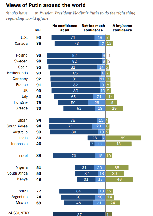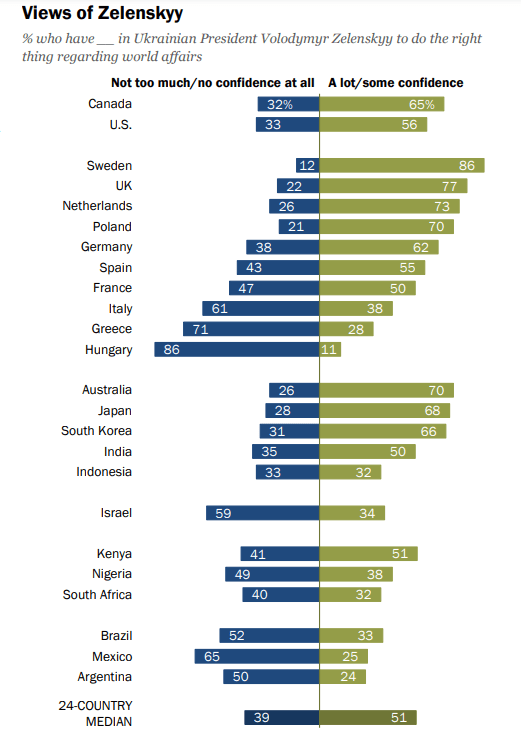 To jeden z rezultatów badania opinii publicznej w 24 krajach na całym świecie przeprowadzonego przez Pew Research Center, o którym przeczytałem w 444.hu.