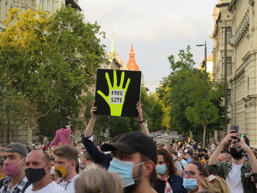 Hadházy złożył wniosek o rejestrację kolejnej demonstracji, w ostatni wtorek, na moście Elżbiety. Nie udzielono mu na to zgody, zezwolono na pobliski plac Ferenciék. Tłum, choć znowu nie tak wielki, parę tysięcy osób, był jednak na tyle duży, że zajął całą ulicę i w taki sposób most i tak został zablokowany.