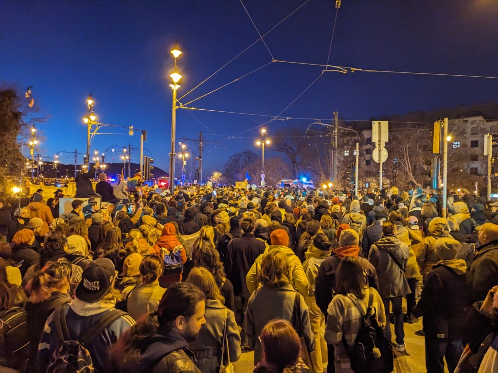 W tłumie uderzała mnie ilość młodych ludzi. Widać było, że nie przyszli wysłuchać przemówień ale zrobić akcję. Co jakiś czas rozlegał się okrzyk „idziemy na most!” aż w końcu tył tłumu ruszył. Najpierw zajęto most Elżbiety ale spora grupa kierowana przez aktywistów Momentum ruszyła na most Wolności. Stamtąd poszli dalej blokując kolejny most, Petőfiego. Po przejściu körútem doszło też do krótkiej blokady mostu Małgorzaty.