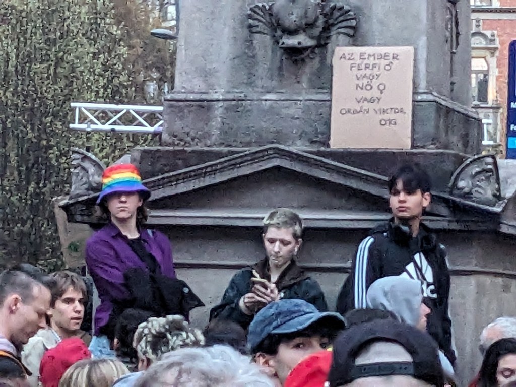 Nagłośnienie było słabe, z dwudziestu metrów, a było to stosunkowo blisko, ledwo co słyszałem. Dotarło mnie jednak jak Hadházy mówił „jak władza podejmuje takie twarde kroki to i nasza odpowiedź musi być twarda”. Mówi też, w nawiązaniu do rosnącej gwałtownie popularności partii Tisza, że potrzeba zarówno partii, która może odnieść sukces w wyborach jaki i ruchu oporu.