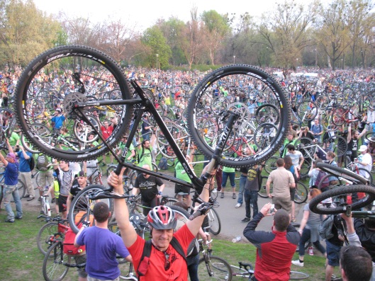 Niezapomniane były przejazdy przez miasto, krzyczenie w tunelach i pod mostami, dopingujące grupy muzyczne, bębniarze czy też zwykli widzowie. No i oczywiście wielkie było podnoszenie rowerów na końcu a także w trakcie demonstracji – podobno zwyczaj wymyślono tutaj, na Węgrzech. Kto był w takim tłumie podnoszącym rowery wie jakie to uczucie, endorfiny aż chlupią pod nogami.